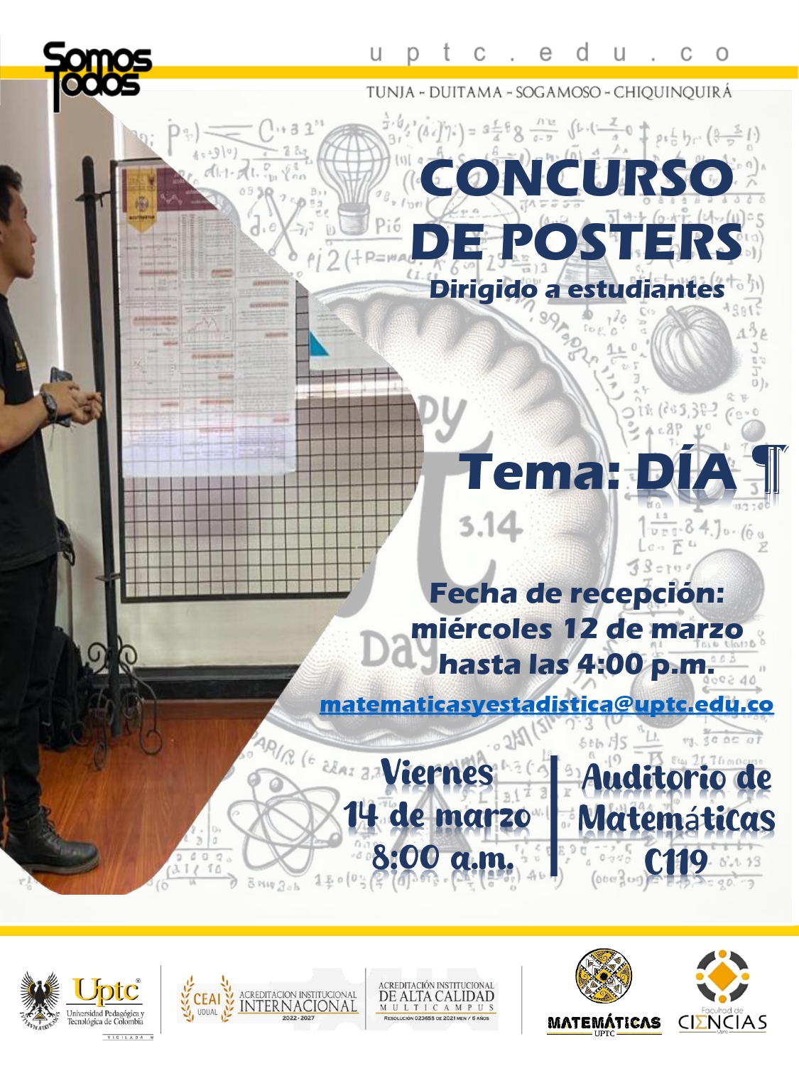 Concurso diseño poster día π, 2025Escuela de Matemáticas y EstadísticaLast updated on 2025-03-10 0 min readEventosEscuela de Matemáticas y EstadísticaFacultad de CienciasRelatedCelebración día π, 2025Panel: Desafios y Oportunidades en el Rendimiento Académico de las Clases de Matemáticas en la Educación Superior: Caso UPTCSocialización PAEPrimer Encuentro Internacional Mujeres UpetecistasSocialización PAE